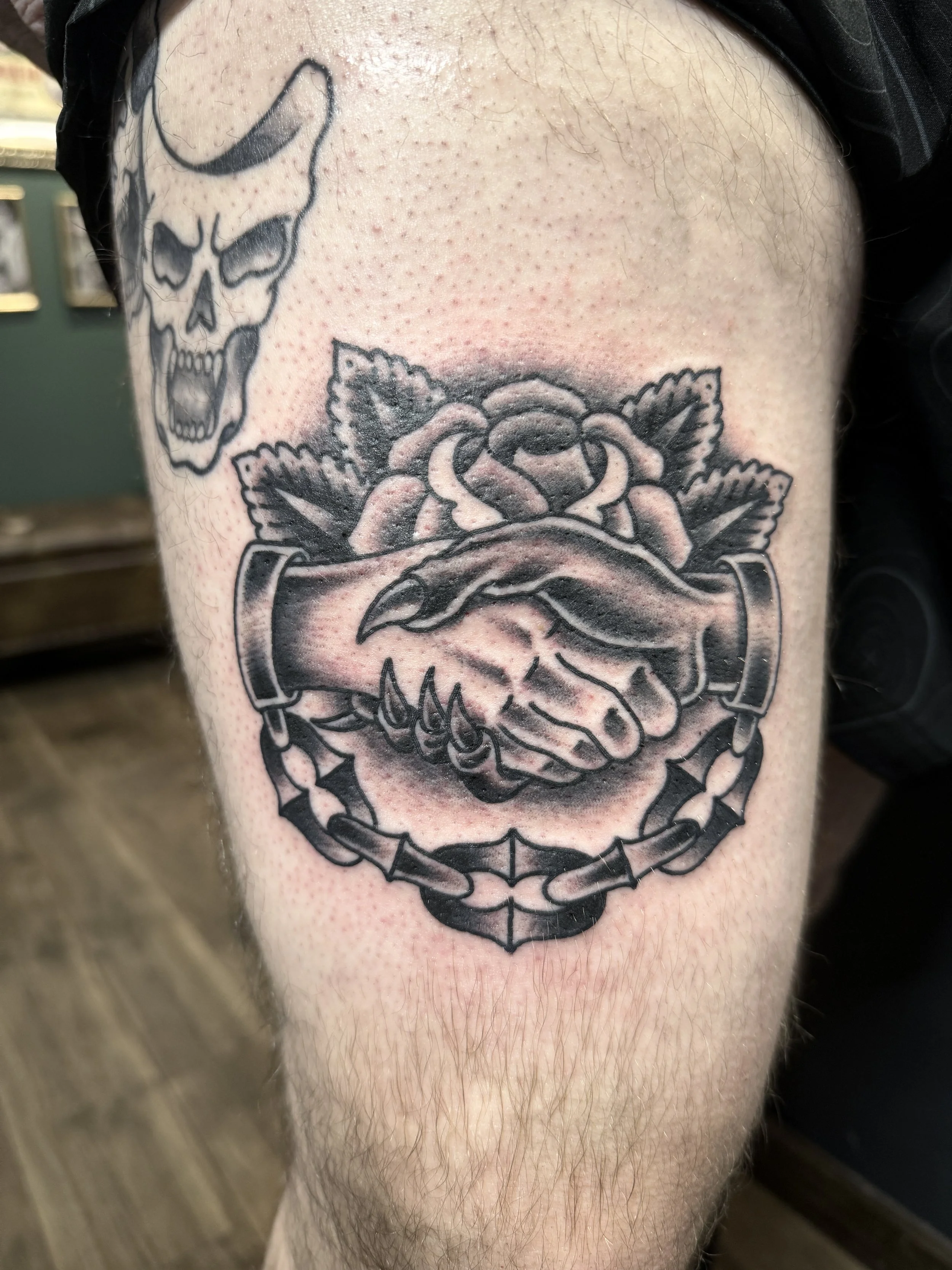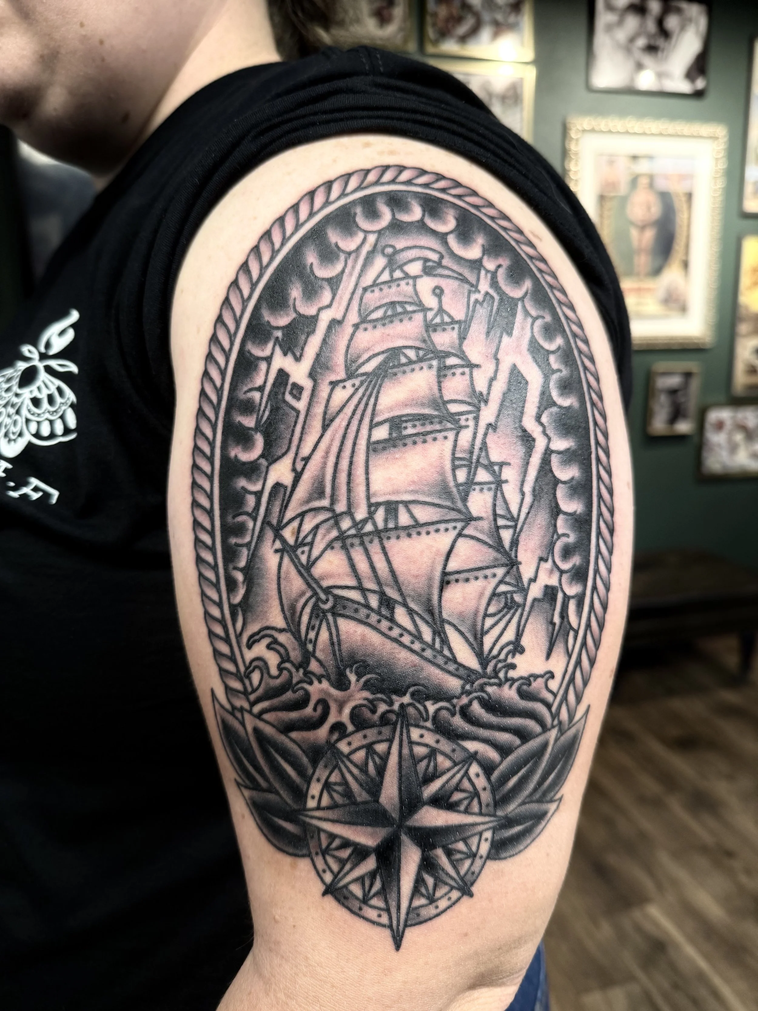 Black And Grey American Traditional Tattoos